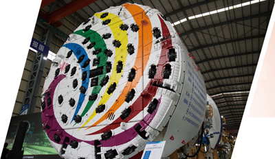我國自主研制的、在昆明組裝的國內最大直徑硬巖掘進機“彩云號”,以白色刀盤為底,用橙、黃、藍、綠、紫五色繪出一幅孔雀圖案。 |