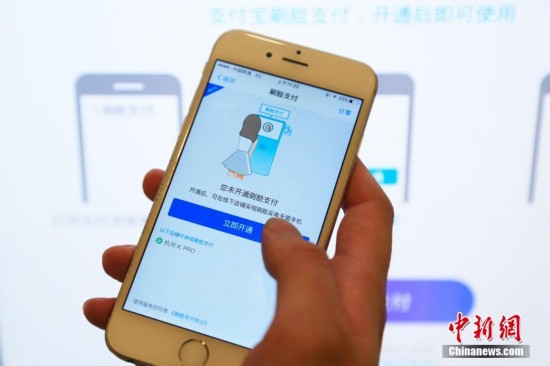 9月19日,刷臉支付需要先在支付寶APP上開通該項服務。近日,支付寶在杭州一家餐廳首次推出刷臉支付服務,用戶開通該項功能后只需綁定手機號,通過支付平臺刷臉即可完成交易,再也無須擔心付款時手機沒電或者忘帶的尷尬。中新社記者 王遠 攝gVg安康新聞網(wǎng)