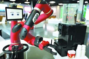 靈活的智能機械手將咖啡遞給顧客。hvJ安康新聞網