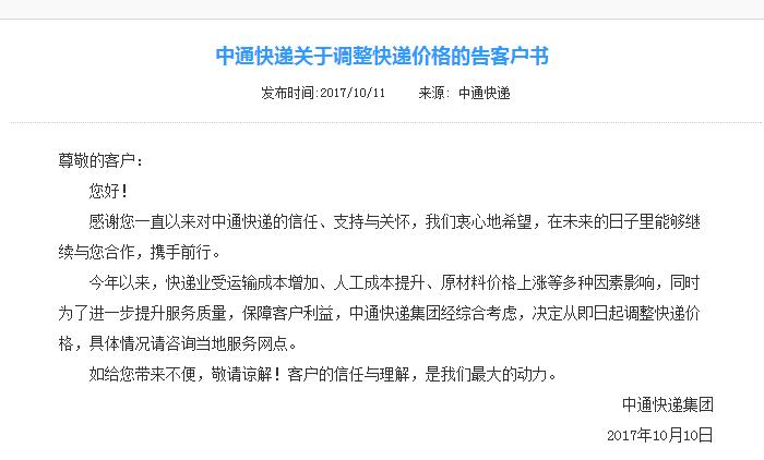 中通快遞官網(wǎng)稱將調(diào)整快遞價(jià)格rP4安康新聞網(wǎng)
