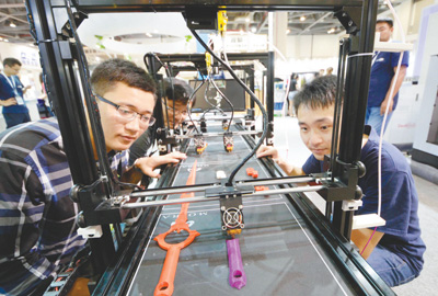 | 2017中國增材制造大會暨展覽會7月在杭州國際博覽中心舉行。圖為觀眾參觀一臺生產型3D打印機。 |