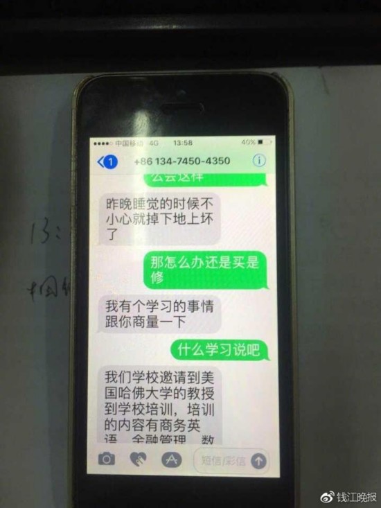 “爸,我是小麗。上午洗衣服手機(jī)掉水里開(kāi)不了機(jī),現(xiàn)在在上課,借了同學(xué)手機(jī),跟你說(shuō)件十萬(wàn)火急的事。我們學(xué)校邀請(qǐng)了美國(guó)哈佛大學(xué)的資深教授來(lái)校面授培訓(xùn),名額有限。一堂課46800,你看我去不去呀?”