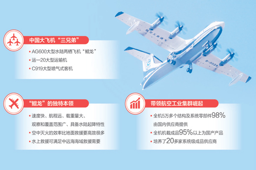 近日,AG600大型水陸兩棲飛機“鯤龍”首飛成功,黨中央、國務院發賀電表示熱烈的祝賀和親切的慰問。AG600與運—20大型運輸機、C919大型噴氣式客機一起,被稱為中國大飛機“三兄弟”。bYC安康新聞網