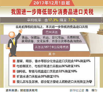 以2017年12月1日起施行的這次關稅調整為例。此次降稅產品涵蓋食品、保健品、藥品、日化用品、服裝鞋帽、家用設備、文化娛樂、日雜百貨等消費品,覆蓋面廣且降幅明顯。Nj6安康新聞網