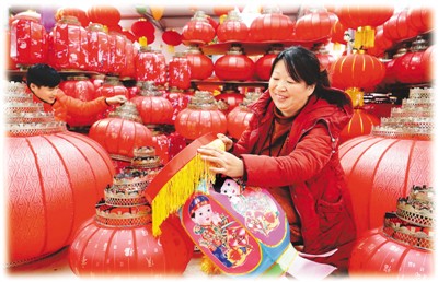 | 圖為李月琴在燈籠工坊里趕制燈籠 |