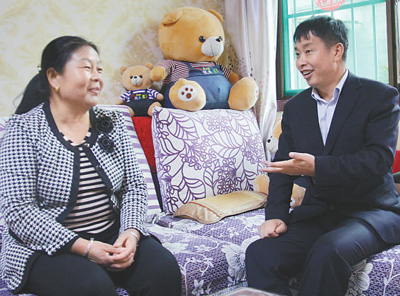 | 柯小海(右)與村民拉家常。 |
