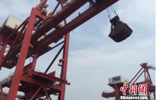 圖為散貨船進行鐵礦砂裝卸作業。杭州海關供圖