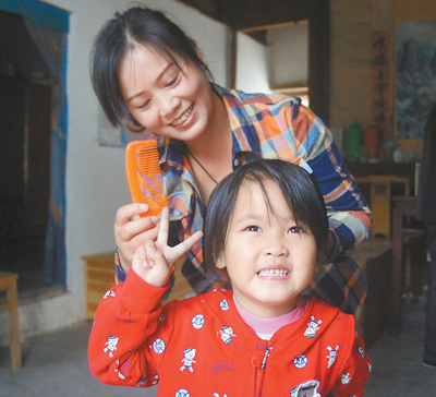 | 圖為金玉琴在幫助村民的孩子梳頭。 |