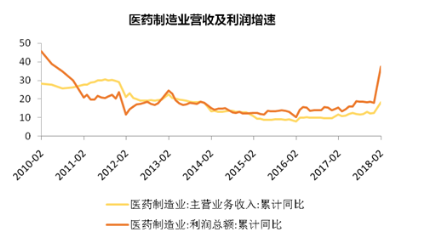 來到2018年一季度前兩月,行業加速改善態勢更為明顯。醫藥制造業主營業務收入同比增長18.3%,利潤總額累計值同比增長37.3%,遠超去年同期,劉可認為,這表明行業整體環境在持續有效改善。