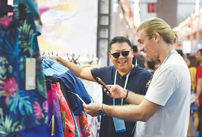 圖為1日,采購商在廣交會上參觀選購。