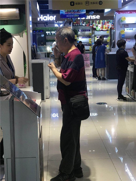 一位年過六旬的老人,一會兒工夫向一位空調導購員鞠躬五次,每次90度。這一幕,發生在南京新街口蘇寧易購云店的空調專區。