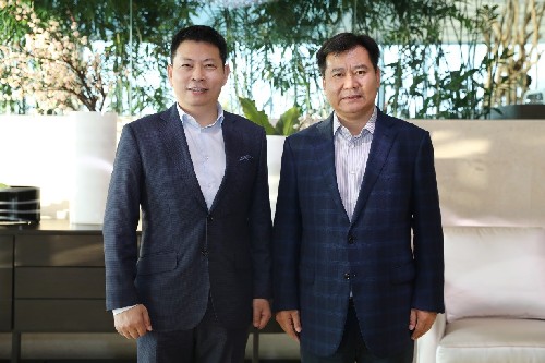 蘇寧控股集團董事長張近東在蘇寧總部會晤華為消費者業務CEO余承東