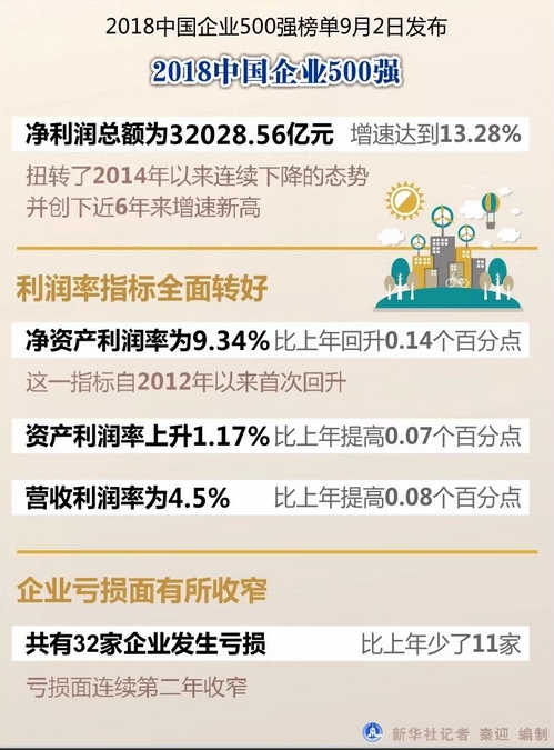 新華社西安9月2日電(記者許晟 張駿賀)2018中國企業(yè)500強榜單2日在西安發(fā)布,500強企業(yè)凈利潤總額為32028.56億元,增速達到13.28%,扭轉(zhuǎn)了2014年以來連續(xù)下降的態(tài)勢,并創(chuàng)下近6年來增速新高。nV9安康新聞網(wǎng)