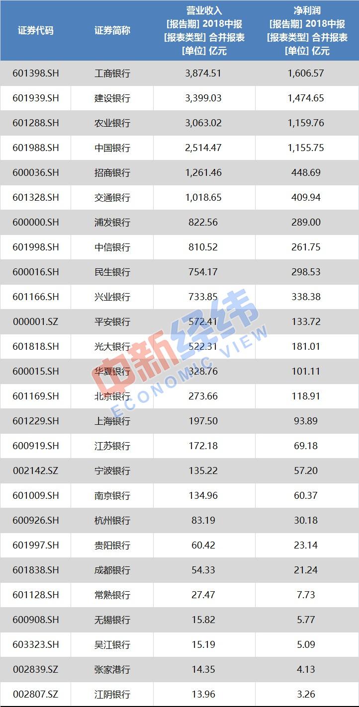 其中,工商銀行、建設銀行、農業(yè)銀行、中國銀行四大銀行2018年上半年分別實現(xiàn)營業(yè)收入3874.51億元、3399.03億元、3063.02億元、2514.47億元;實現(xiàn)凈利潤1606.57億元、1474.65億元、1159.76億元、1155.75億元,在業(yè)內依舊遙遙領先。