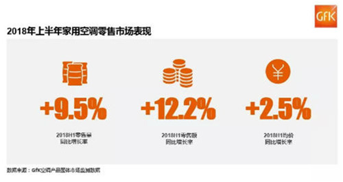 在消費(fèi)升級帶動下,空調(diào)市場價格水平穩(wěn)中有升,中高端機(jī)型銷量占比提高,產(chǎn)品結(jié)構(gòu)進(jìn)一步優(yōu)化。據(jù)產(chǎn)業(yè)在線數(shù)據(jù),2018冷年,以高端空調(diào)柜機(jī)為例,銷量占比由上個冷年的46.45%提升近10個百分點至56.06%。捷孚凱(GfK中國)家用空調(diào)產(chǎn)品零售監(jiān)測數(shù)據(jù)顯示,2018年上半年空調(diào)產(chǎn)品均價同比增長2.5%。