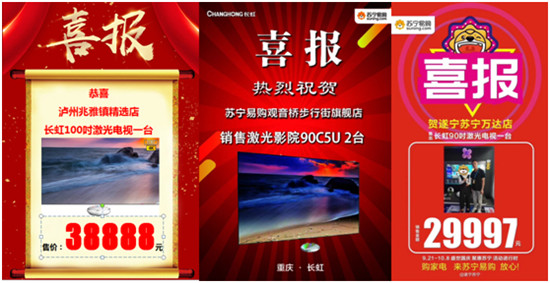 作為彩電第一銷售渠道的蘇寧,對這個十一依然持樂觀態度,線上推出“歡騰中國爽購十一”活動,50英寸4K人工智能電視拼購價僅需1599元;線下除爆款直降外,還在貴陽、成都、西安等地開啟高端彩電品鑒會。