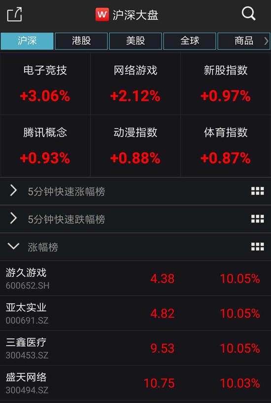 在消息發出后,游戲板塊集體爆發。從A股方面來看,截至周五(11月21日)收盤,在大盤整體低迷下跌0.79%的背景下,Wind電子競技指數和網絡游戲指數兩大概念板塊逆勢上攻,截至收盤分別上漲3.06%與2.12%,其中,游久游戲、盛天網絡、游族網絡、中青寶等漲停,完美世界上漲超6%,昆侖萬維上漲近3%。