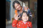 圖為金玉琴在幫助村民的孩子梳頭。