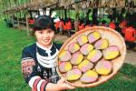 旅游扶貧使海南貧困黎鄉——小妹村脫貧致富。圖為小妹村的一名黎族姑娘展示黎族特色食品——三色飯。