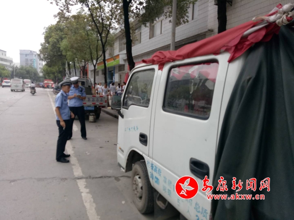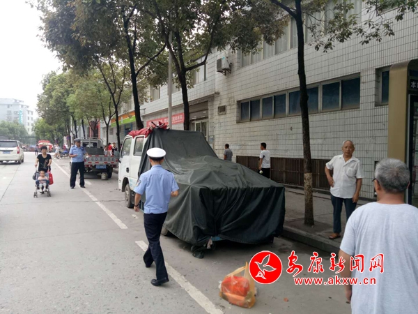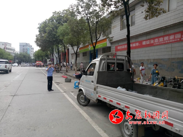 江北中隊在江北大道鐵路分局九華段清理整治水果攤點攤位車