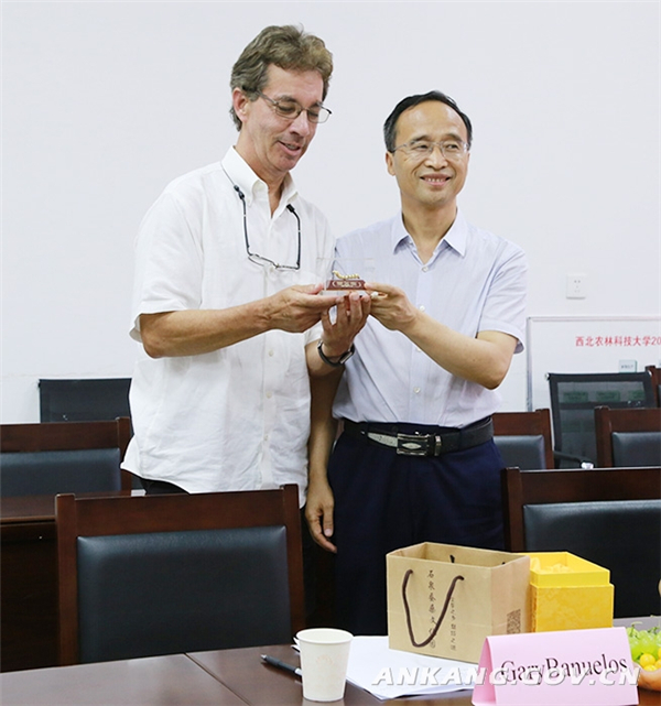 最后,魯琦誠摯邀請(qǐng)Gary Banuelos博士到安康指導(dǎo)富硒產(chǎn)業(yè)發(fā)展及硒科學(xué)研究,并向其贈(zèng)送了具有安康特色的鎏金銅蠶紀(jì)念品。
