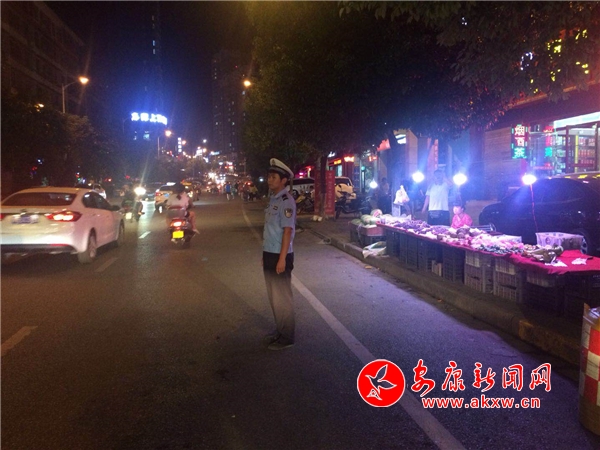 張灘交警中隊夜晚持續整治南環東路水果商販