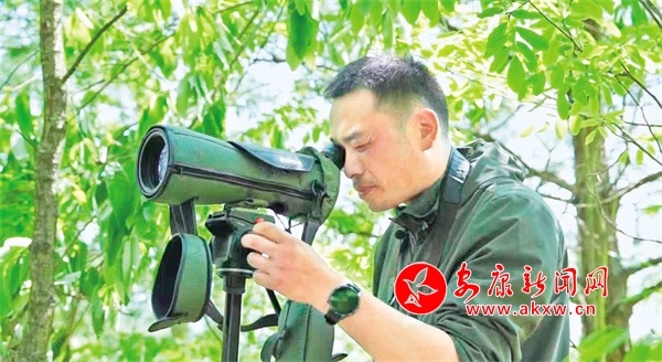 李夏正在野外觀察朱鹮孵化情況 楊穩 攝