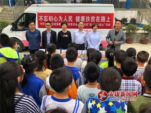 安康市婦幼保健院到佐龍鎮正溝小學開展健康扶貧工作,并捐贈圖書。