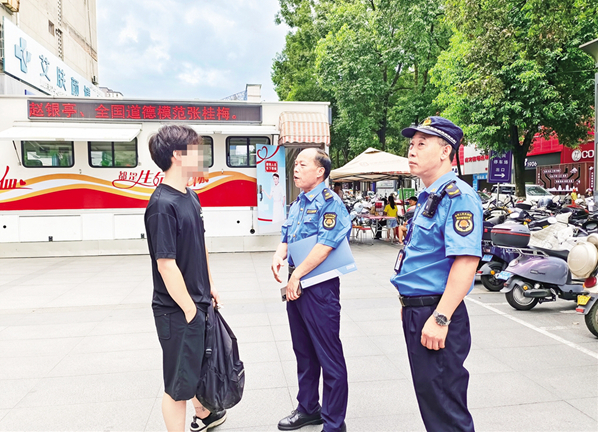 “同志,你的行為違反了《陜西省城市市容環(huán)境衛(wèi)生條例》第四十五條第一款的規(guī)定。”執(zhí)法人員張善偉迅速拍下錄像,向前緊走幾步亮明身份后說:“剛才你在公共場所隨地吐痰,按照規(guī)定需要現(xiàn)場改正,并處以10至50元罰款。但如果你在微信朋友圈轉(zhuǎn)發(fā)《‘痰’吐文雅 舉‘紙’得體》公益海報宣傳,點(diǎn)贊5人以上,就可以不用罰款。”張善偉向這名行人詳細(xì)介紹了相關(guān)規(guī)定。
