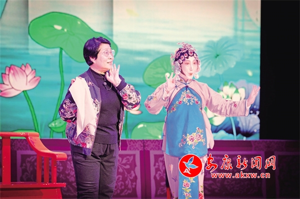 國家級傳承人王發(fā)蕓(左)老師指導(dǎo)學生演出