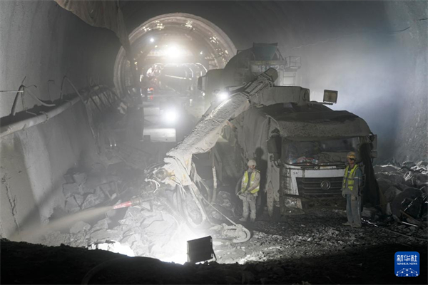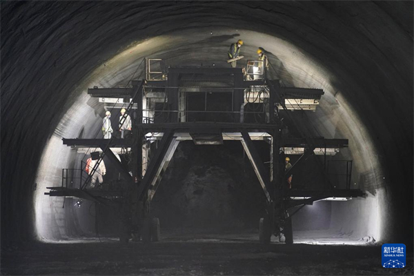 △ 1月26日,在長達13.3公里的西康高鐵秦嶺九天山隧道內,中鐵七局集團的工人在開挖面作業。新華社記者 邵瑞 攝