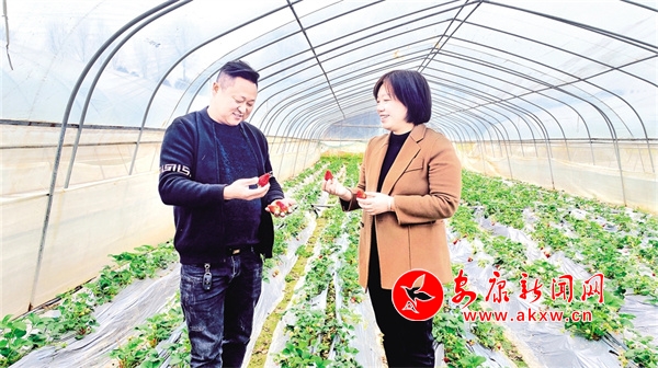 雙乳鎮黨委書記柳楊(右)走進草莓園s3E安康新聞網