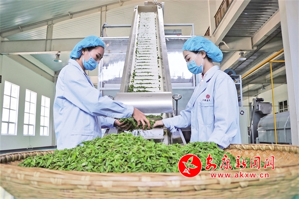 重視茶葉質量管控的同時,漢濱區還積極引導企業創新研發茶產品,進行深加工、延伸產業鏈、提升附加值。“我們每年3月10日左右開工,早春平均每天收到鮮葉800到1500斤,制出干茶200到300斤,春茶采收50余噸,產值可達1600萬余元,帶動1000多人通過采茶增收3000至5000元。”安康市漢濱區德潤天然富硒農產品開發有限公司運營總監陳同磊說。2021年,德潤公司投產了“年產400噸富硒茶清潔化生產線”項目,這是目前陜南較大容量的殺青生產線和炒干生產線之一,可同時加工富硒綠茶、紅茶、白茶、黑毛茶等多品類茶,極大地豐富了安康富硒茶品種及市場,也使茶葉加工溫度控制更加精準,整體口感進一步提升。