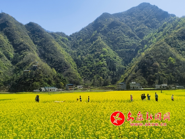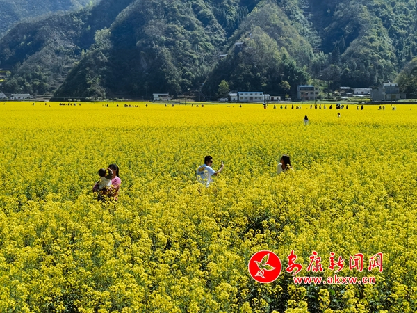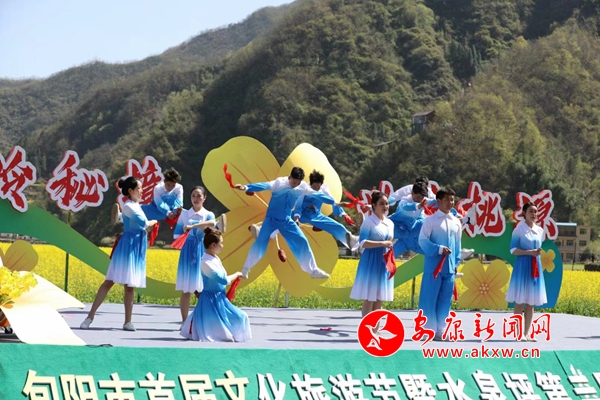活動現場,旬陽市仁河口鎮水泉坪景區萬畝油菜花海在陽光照耀下嬌俏迷人,和煦春風拂面而來,花海泛起層層疊疊的金色浪潮,濃郁的花香令人沉醉,絡繹不絕的觀眾和游客不時駐足拍照。精彩的文藝演出更是輪番上演,歌曲《油菜花開了》《旬陽人》、表演唱《庭院經濟富農家》、舞蹈《盛世花開》《家鄉的油菜花》《春頌》、嗩吶獨奏《百鳥朝鳳》、音樂快板《紅色傳承譜華章》、大筒子小戲《勸賭》等節目,讓觀眾目不暇接、贊不絕口,為景區增添了文化內涵、營造了藝術氛圍、給繁花似錦的油菜花海注入了生機活力。