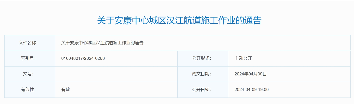 關(guān)于安康中心城區(qū)漢江航道施工作業(yè)的通告