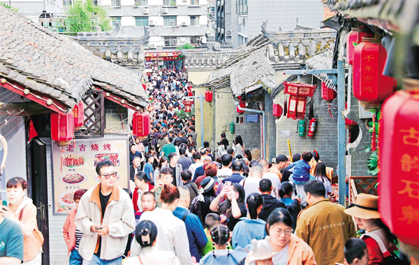 “五一”期間,石泉縣各大景區景點車水馬龍、游人如織,來自全國各地的游客在此觀秦巴美景、品特色美食、賞精彩演出、購地方特產,整個文旅市場持續呈現出一片火爆、安全、有序的局面。