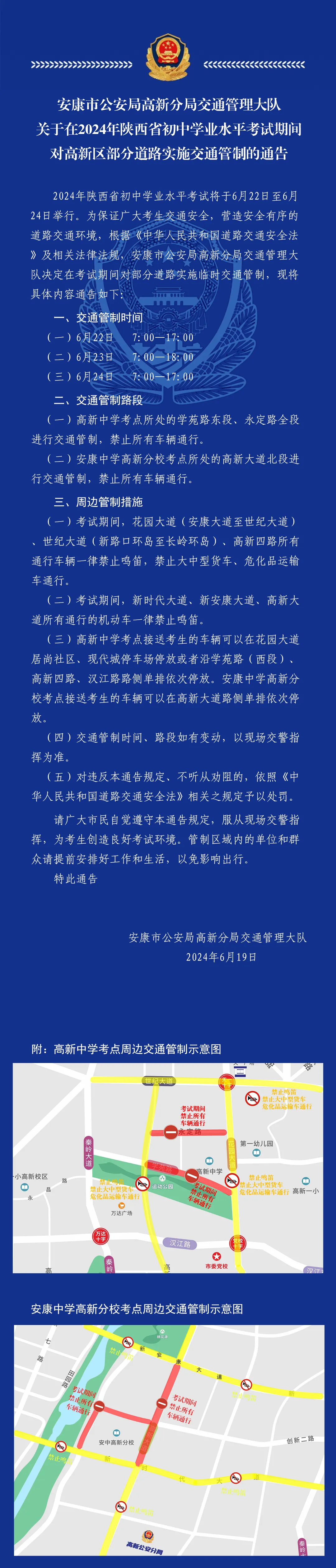 2024年陜西省初中學業水平考試期間 安康高新區部分道路實施交通管制