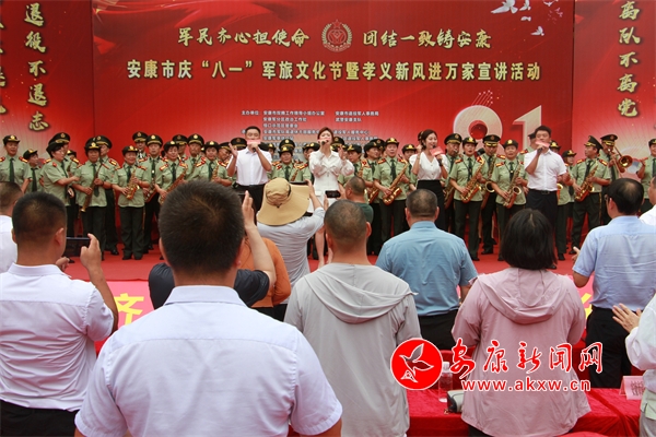 本網(wǎng)訊(記者 黃慧慧 通訊員 王典根)軍愛民,民擁軍,軍民融合情誼深。7月27日,由安康市雙擁工作領(lǐng)導(dǎo)小組辦公室、安康市退役軍人事務(wù)局、安康軍分區(qū)政治工作處、武警安康支隊、恒口示范區(qū)管委會共同主辦,以“軍民齊心擔(dān)使命 團結(jié)一致鑄安康”為主題的安康市慶“八一”軍旅文化節(jié)暨孝義新風(fēng)進萬家宣講活動在恒口示范區(qū)南月村舉行,軍地領(lǐng)導(dǎo)、部隊官兵、退役軍人、現(xiàn)役軍人家屬及群眾代表共300余人參加活動。