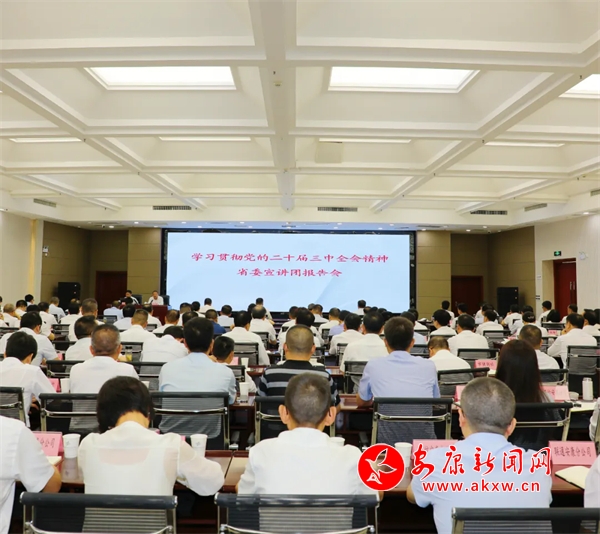 本網訊(記者 艾蓓)根據省委統一部署,8月5日,學習貫徹黨的二十屆三中全會精神省委宣講團報告會在我市舉行。省委宣講團成員、省委副秘書長、省委政研室主任王飛作宣講報告。市委書記武文罡主持報告會。市人大常委會主任王彪、市長王浩、市委副書記高晶華和在家市級領導出席會議。ELJ安康新聞網