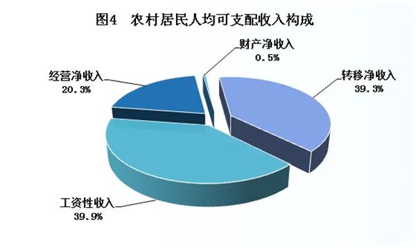 全市農(nóng)村居民人均可支配收入14403元,比上年增加1035元,增長(zhǎng)7.7%。其中,工資性收入5742元,增長(zhǎng)7.9%,占可支配收入的比重為39.9%;經(jīng)營凈收入2928元,增長(zhǎng)6.7%,占比20.3%;財(cái)產(chǎn)凈收入68元,增長(zhǎng)9.9%,占比0.5%;轉(zhuǎn)移凈收入5664元,增長(zhǎng)8.1%,占比39.3%。