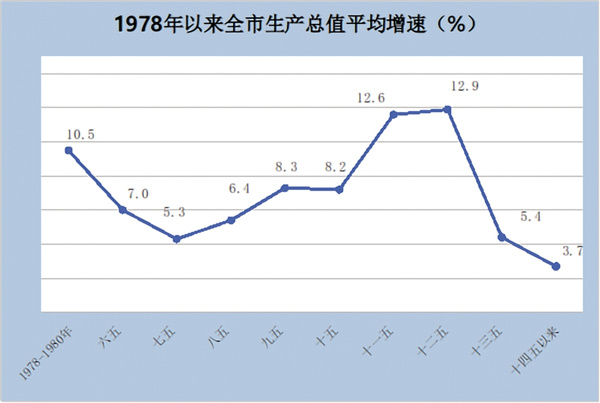 追趕超越步履堅實。從增速看,“六五”到“十五”年均增速為個位數;“十一五”“十二五”時期發展較快,年均增速兩位數,“十三五”年均增長5.4%,“十四五”前三年平均增長3.7%。從具體年份看,2007—2016年連續10年保持兩位數增長,其中2012年增長15.2%。自2009年起,全市GDP增速持續高于全省平均水平,尤其是2015年躍居全省第一,2015—2019年連續5年保持全省首位,呈后來居上、追趕超越之勢。2020年受疫情沖擊,增速回落至全省第9位,2023年全市經濟平穩恢復,增長1.7%,發展進入新常態。3Rk安康新聞網