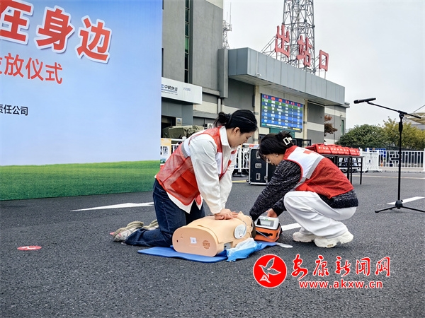 活動現場,進行了急救包、體檢卡捐贈暨投放儀式,為愛心企業頒發了捐贈榮譽證書,紅十字志愿服務隊進行了授旗及宣誓;市紅十字會應急救護師現場作心肺復蘇及AED示范講解。
