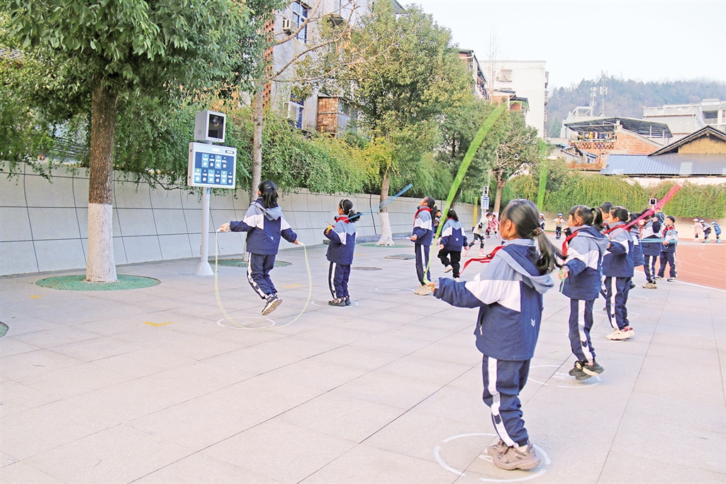 學生在AI智慧體育運動儀器感應區內跳繩。K3n安康新聞網