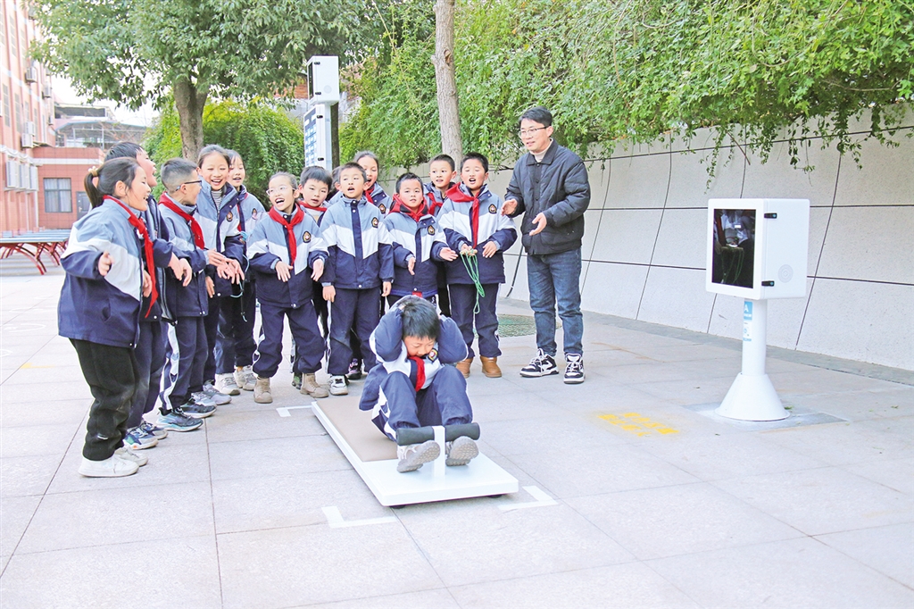 AI智慧體育運動系統可以準確記錄學生立定跳遠成績。K3n安康新聞網