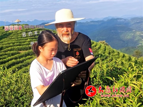寧?kù)o的校園里,一堂別開生面的美育課正在教學(xué)樓三樓展開。孩子們手握畫筆,將青瓦白墻的鄉(xiāng)村建筑、青蔥翠綠的茶山,化作一幅幅充滿童真卻飽含深意的水墨畫。