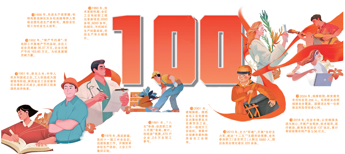 2025年,是全國總工會成立100周年,作為工人階級和廣大勞動群眾的堅(jiān)強(qiáng)后盾,全國總工會為我國的社會進(jìn)步和經(jīng)濟(jì)發(fā)展做出了不可磨滅的貢獻(xiàn)。安康工運(yùn)事業(yè)從1925年漢水畔第一聲“勞工萬歲”的吶喊,到深度參與三線建設(shè)、脫貧攻堅(jiān)、生態(tài)經(jīng)濟(jì)等重大戰(zhàn)略,再到新時(shí)代百萬職工投身幸福安康建設(shè)的鏗鏘步履,始終與黨的事業(yè)血脈相連,與城市發(fā)展同向同行。