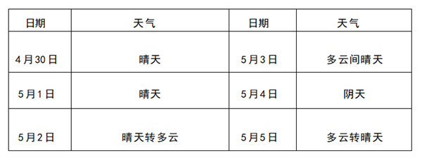 預計“五一”期間我市川道地區最低氣溫13~19℃,最高氣溫32~36℃,高山地區最低氣溫10~14℃,最高氣溫29~32℃。