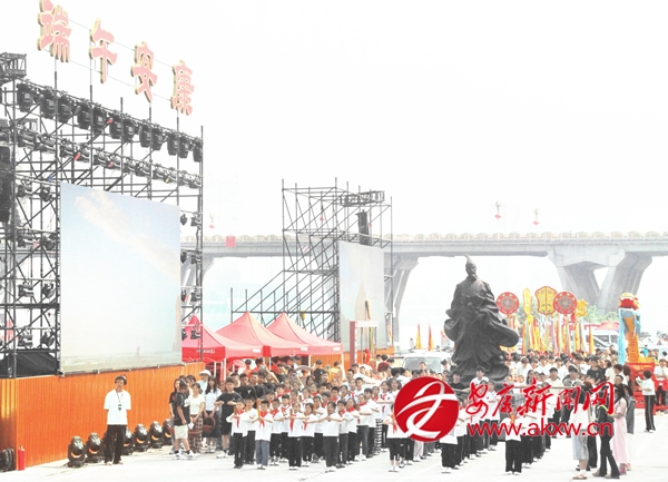江面上,一艘艘龍舟如離弦之箭飛馳而過,選手們整齊劃一地揮動船槳,濺起層層水花,展示出強大的團隊協作精神和競技實力。舞臺上,文藝表演精彩紛呈。緬懷先賢節目莊嚴肅穆,百名童子手持竹簡,齊聲詠頌祭文,將人們帶回到那個古老的時代,追思愛國詩人屈原。龍頭祭祀環節莊重而神圣,“請龍、祭龍、合龍、送龍、龍頭點睛”等流程依次上演,傳承地域民俗風情。情景歌舞、漢調二黃、民俗舞蹈等具有濃郁地方特色的節目輪番登場,演員們全情投入,用精湛的表演展現了安康獨特的文化魅力,為觀眾帶來了一場視聽盛宴。