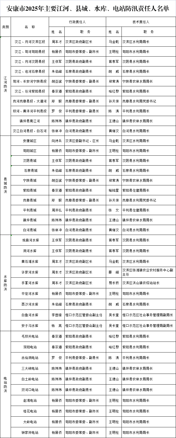 附件:安康市2025年主要江河、縣城、水庫、電站防汛責任人名單C2A安康新聞網