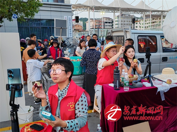 △ 漢陰縣蒲溪鎮(zhèn)第一書記組團在縣村超比賽場地外直播賣桃子,累計幫銷紅桃2.8萬余斤。